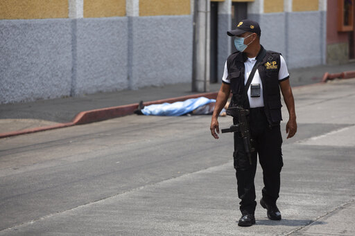 A man lies dead in a street in Guatemala City after being shot by unknown attackers as an inspector of the Attorney General's office walks through the area, April 14, 2020. In the time of the new coronavirus, authorities and citizens of several Latin American countries say quarantines seem to have led to a fall of crime, especially on the streets, but they also warn of the rise of violence against women. /AP