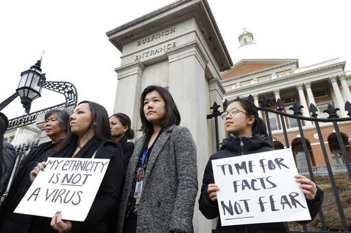 (Top Photo: Jessica Wong, of Fall River, Mass., front left, Jenny Chiang, of Medford, Mass., center, and Sheila Vo, of Boston, from the state's Asian American Commission, stand together during a protest on Thursday, March 12, 2020, on the steps of the Statehouse in Boston. Asian American leaders in Massachusetts condemned what they say is racism and fear-mongering aimed at Asian communities amid the coronavirus pandemic that began in China. /AP)
