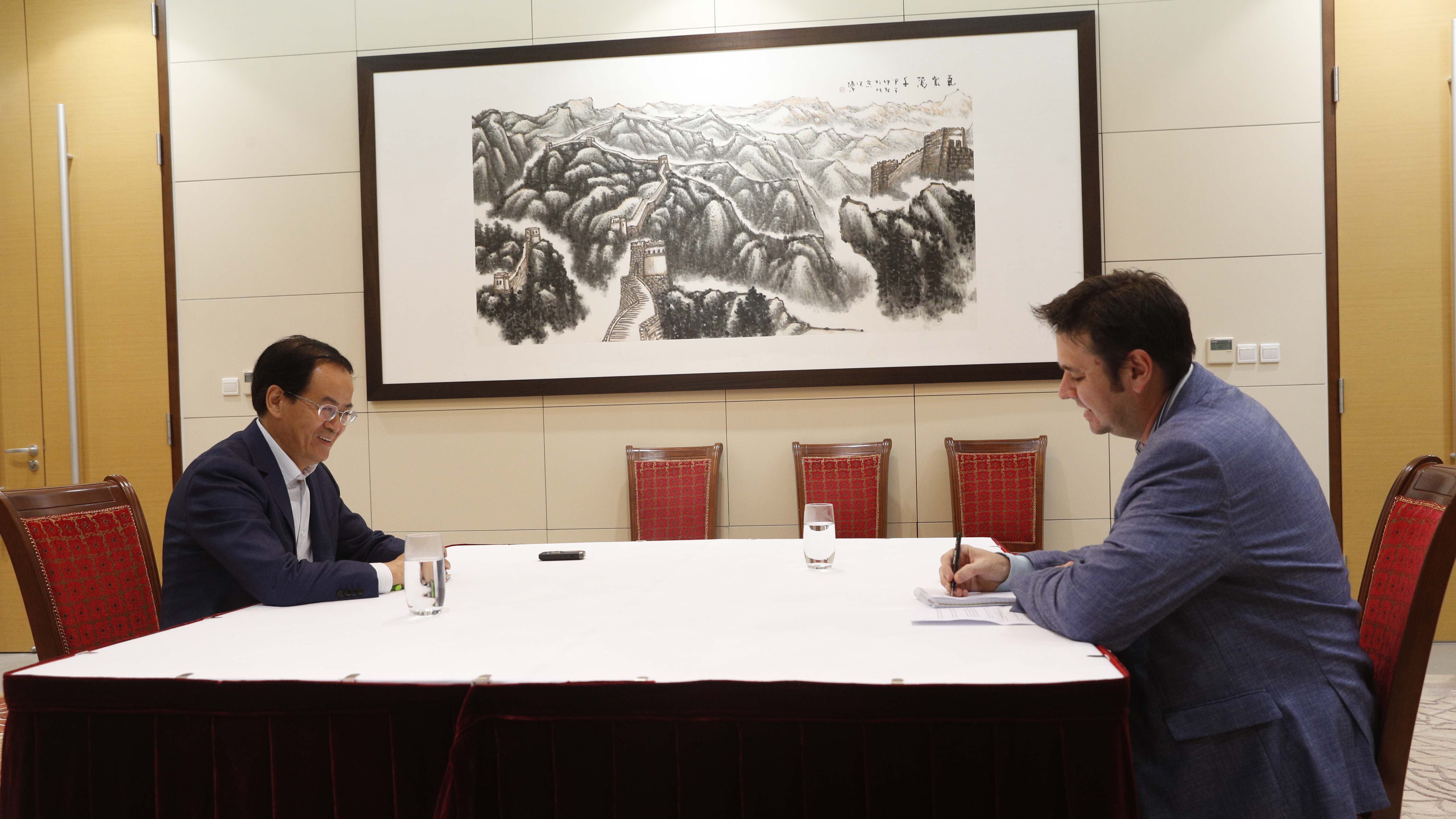 Chinese Ambassador Cheng Jingye is interviewed by Australian Financial Review political correspondent Andrew Tillet, April 26, 2020. /Photo via Chinese embassy in Australia