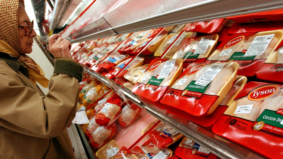 Tyson brand chicken products in the refrigerator section of an Associated Supermarket in New York City, United States, file photo. /VCG