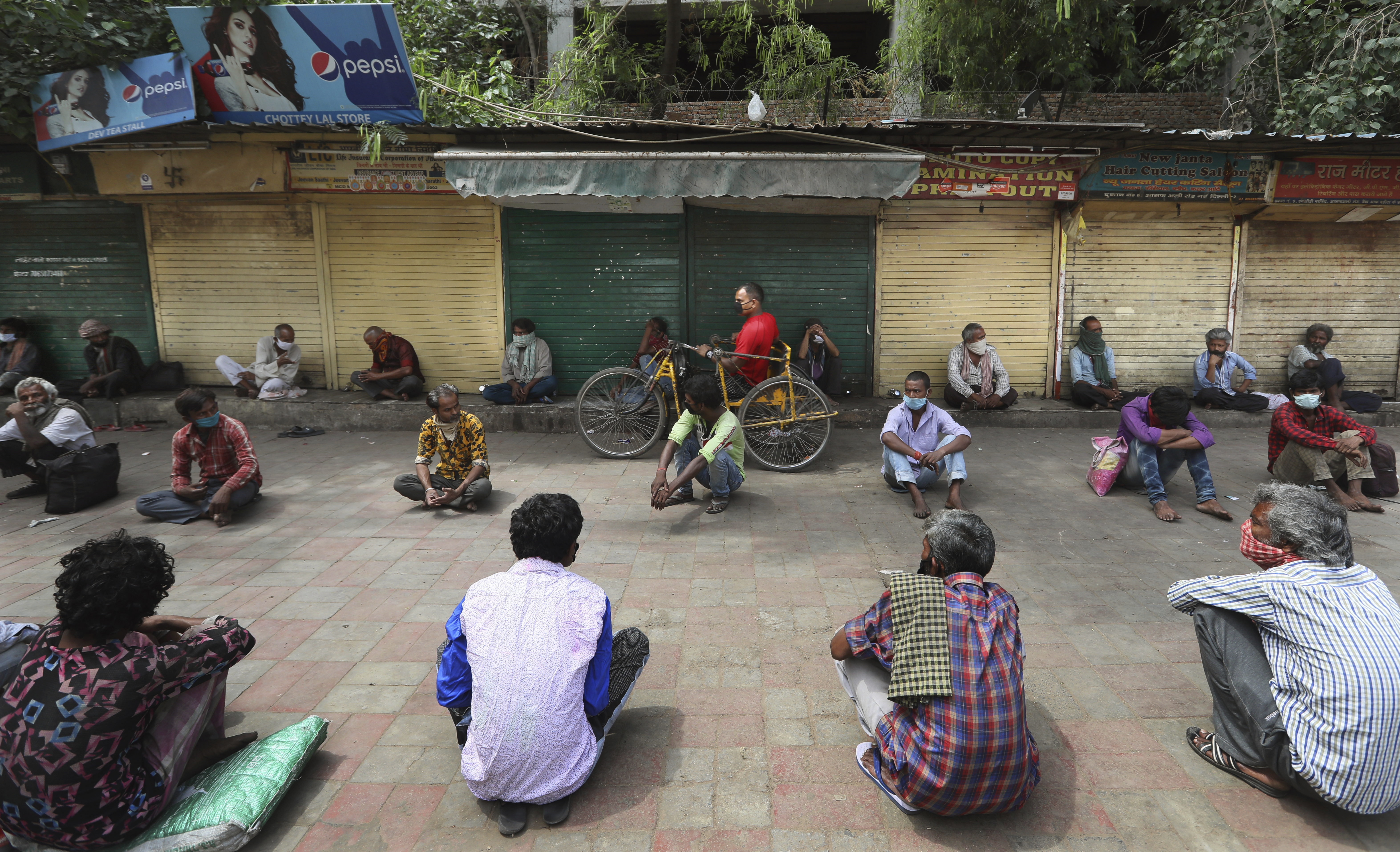 Homeless people wait for free distribution of food during extended lockdown in New Delhi, India, May 4, 2020. /AP