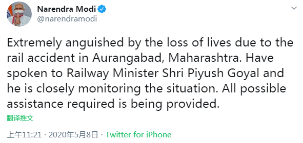 Vice President M Venkaiah Naidu said in a tweet that he was "deeply saddened to learn about the loss of lives in a train mishap in Aurangabad, Maharashtra. My heartfelt condolences to bereaved families."