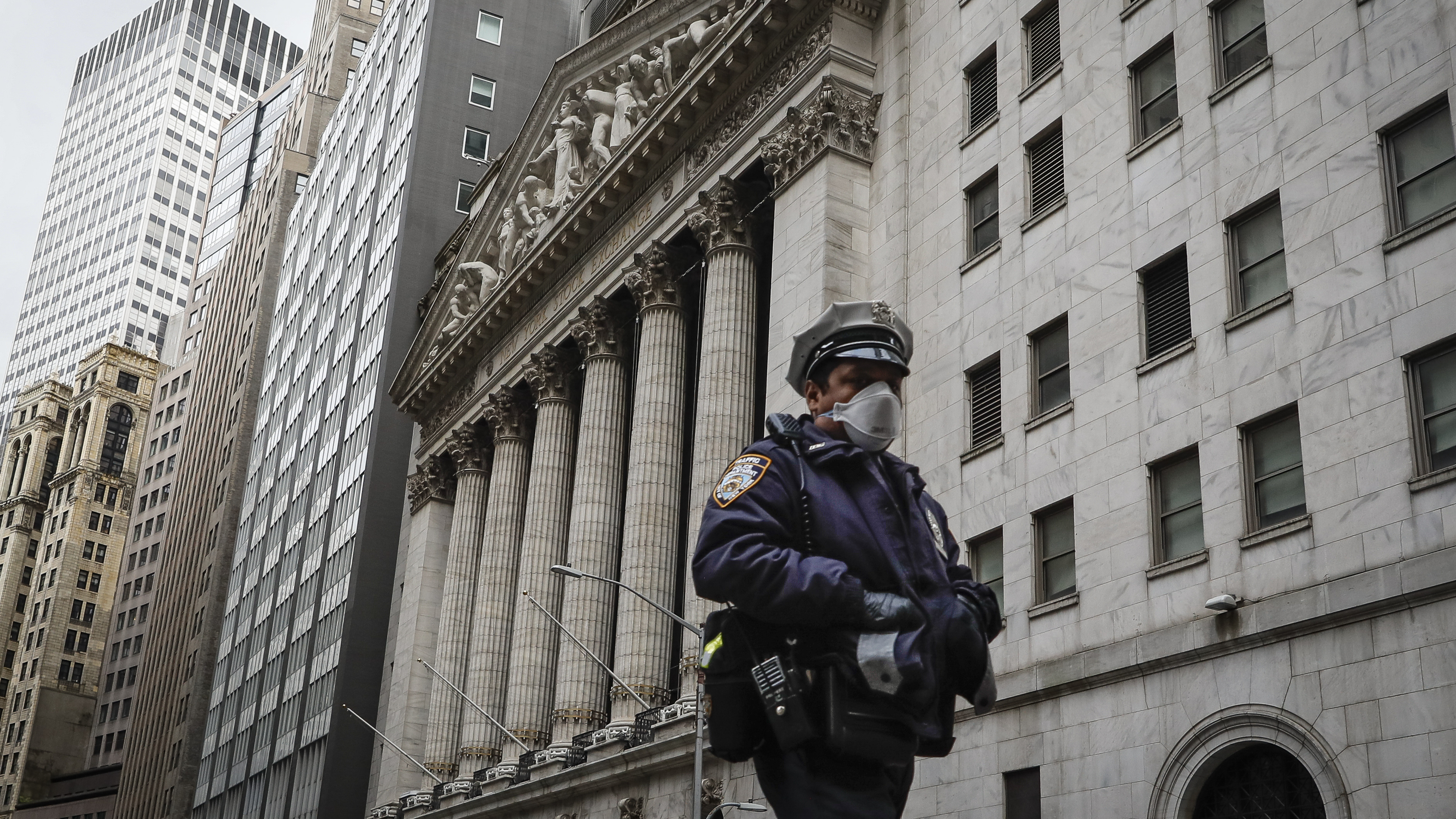 An NYPD officer walks along a sparsely populated Wall Street in the Manhattan borough of New York, U.S., May 1, 2020. /AP