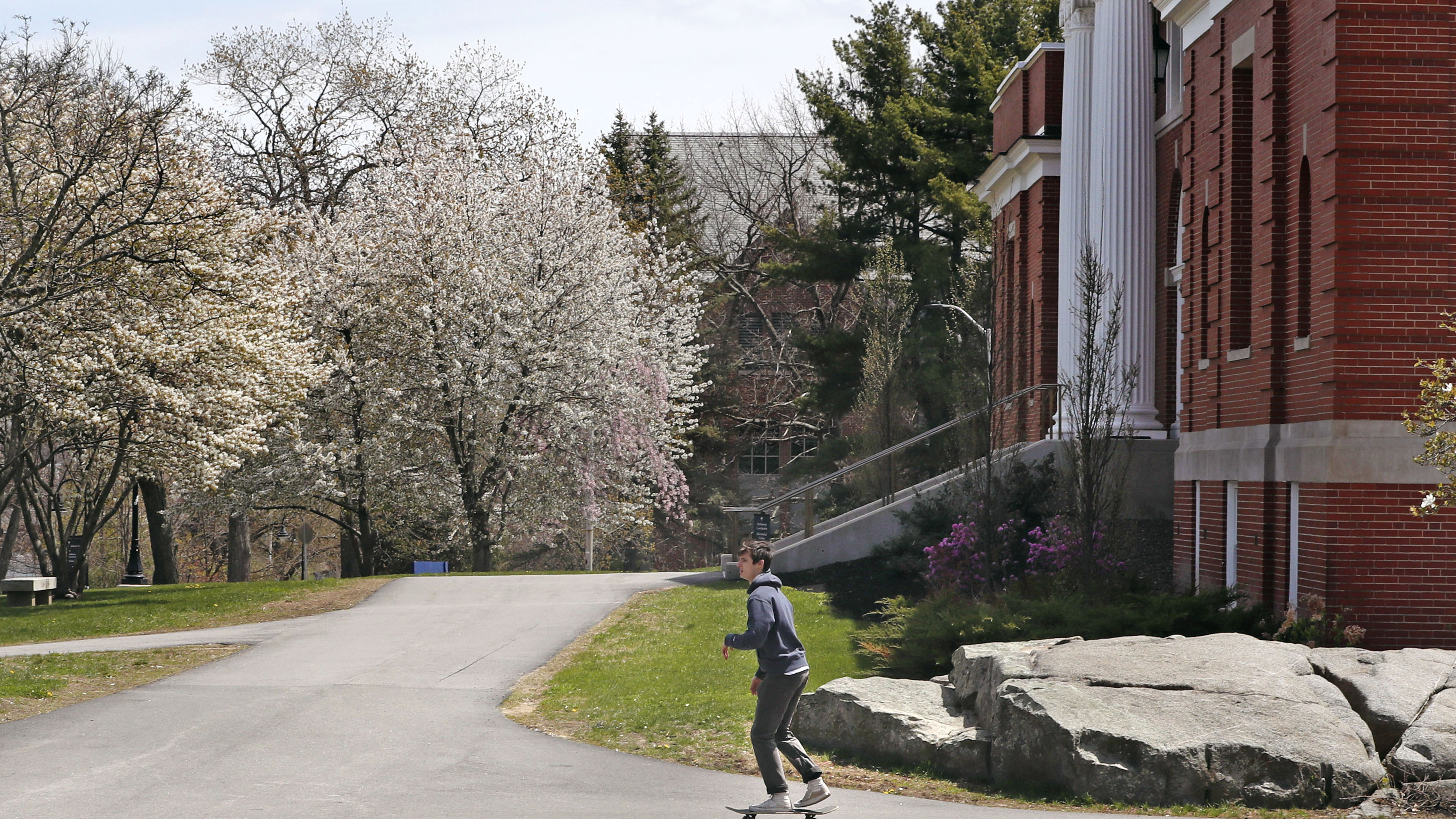 A lone skateboarder rides through the empty campus at the University of New Hampshire in Durham, New Hampshire, U.S., May 8, 2020. /AP