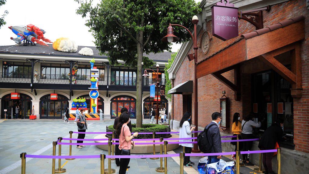 Tickets for Shanghai Disneyland is on sale from May 8 and visitors consult at the service center, Shanghai, China, May 8, 2020. /VCG