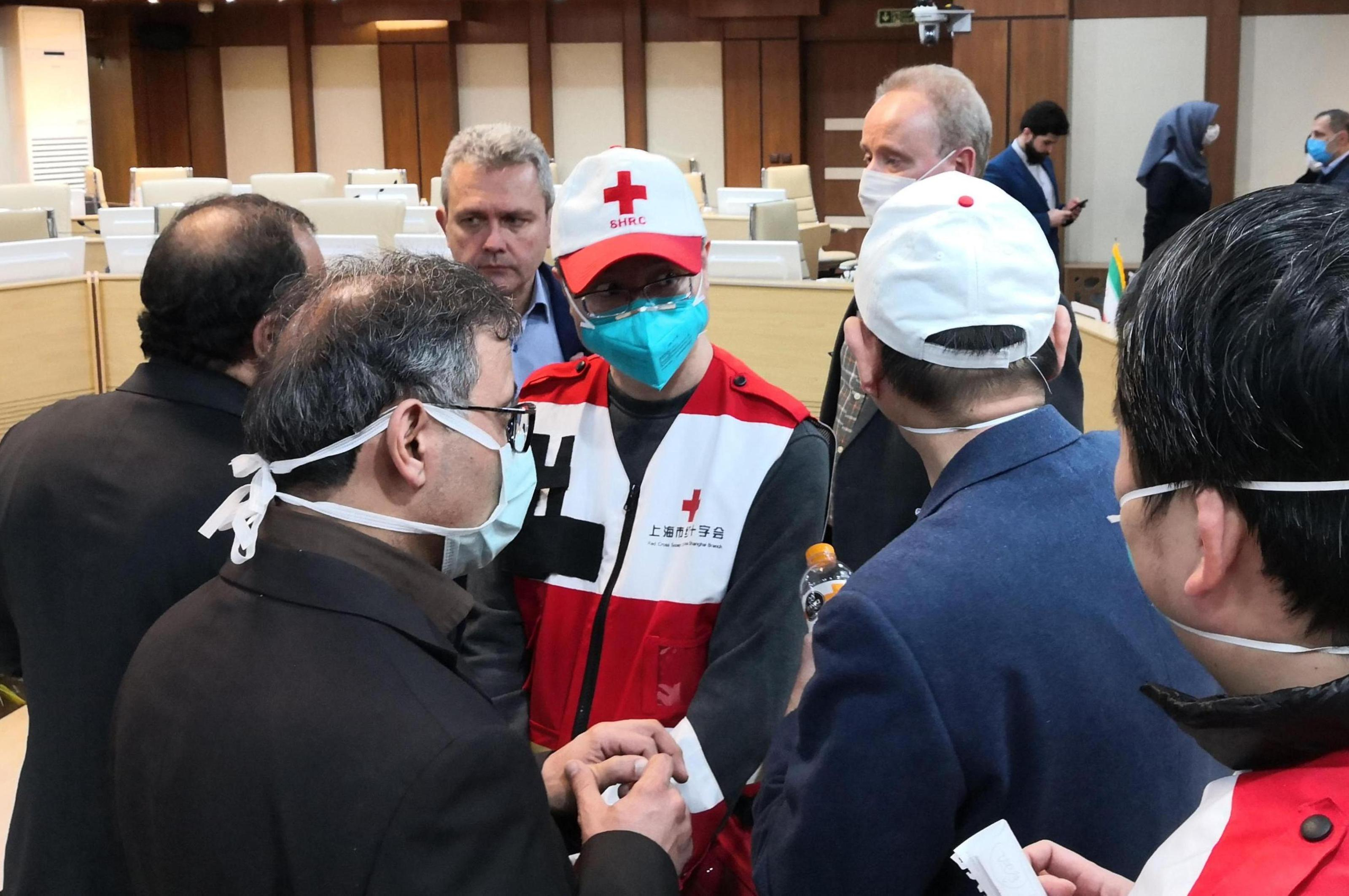 Chinese medical team members meet with Iranian medical experts in Tehran, Iran, March 7, 2020. /Xinhua