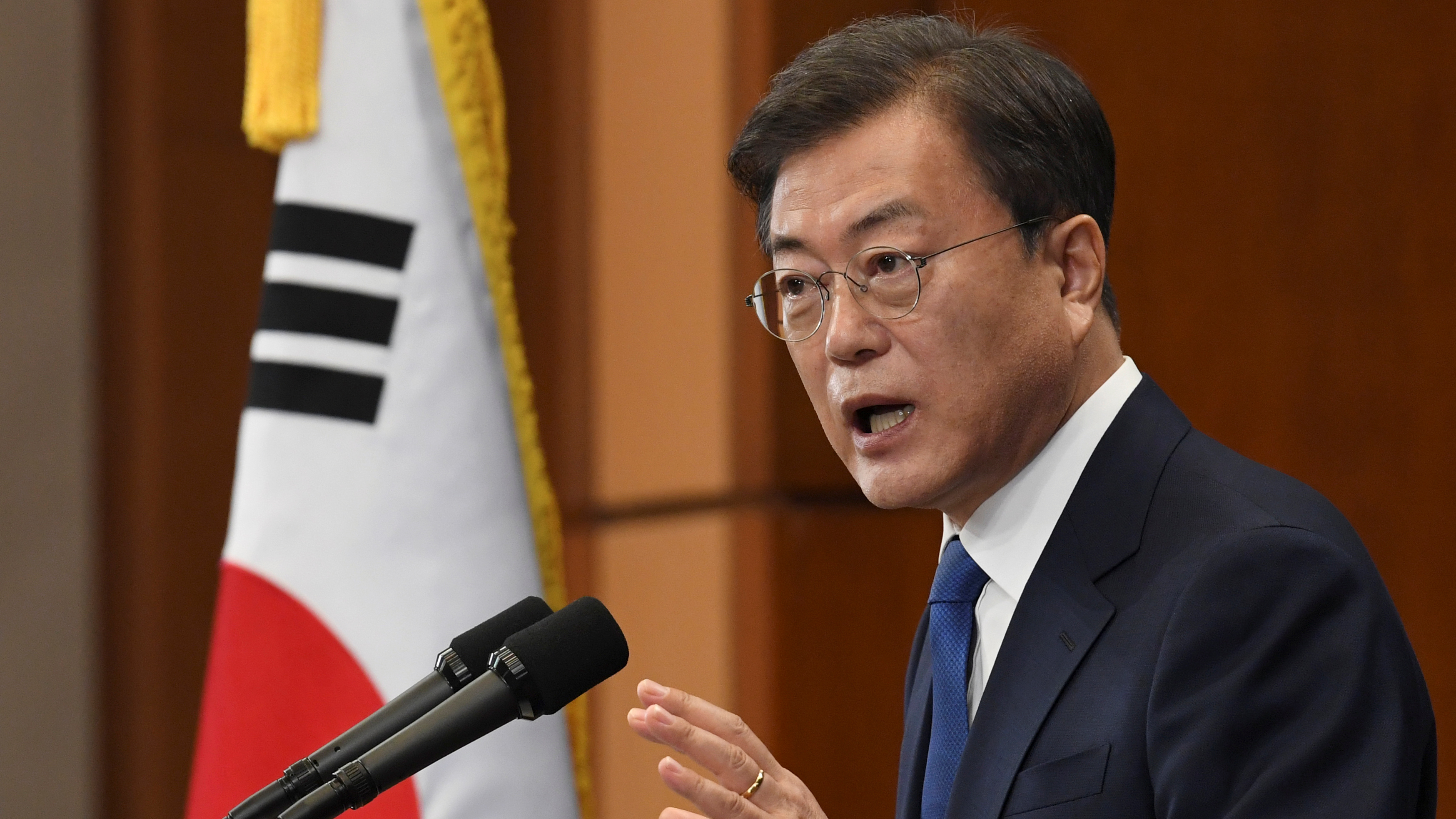 South Korean President Moon Jae-in speaks on the occasion of the third anniversary of his inauguration at the presidential Blue House in Seoul, South Korea, May 10, 2020. /Reuters