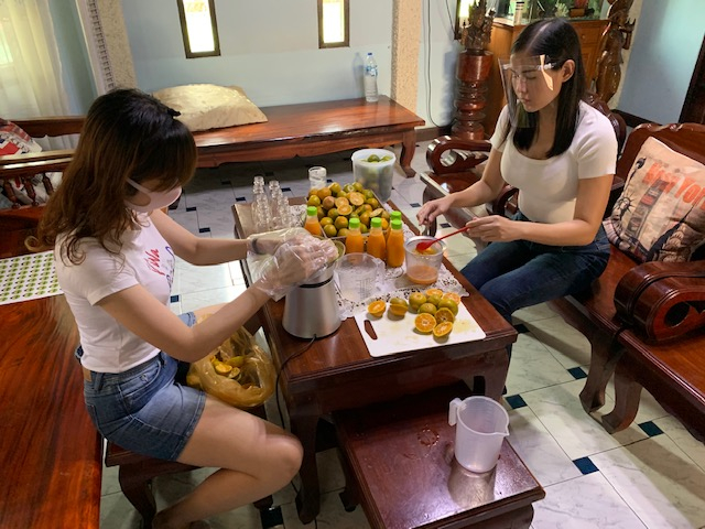 Cabin crew in Bangkok make orange juice to sell. Martin Lowe/CGTN
