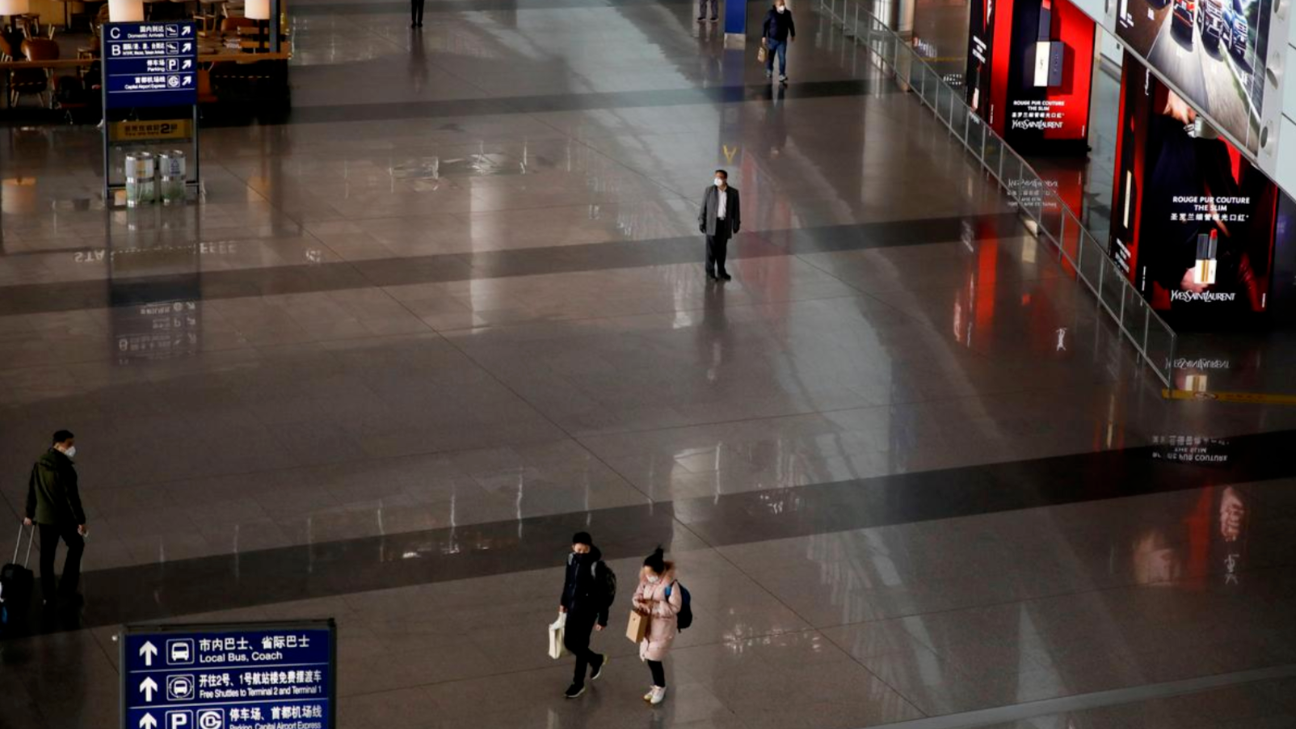 March 16, 2020 picture of people wearing face masks walk at Beijing Capital International Airport as the country tries to contain imported cases of coronavirus. /Reuters