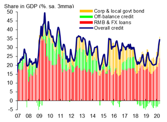 The rise in leverage is a result of counter-cyclical policies aimed at supporting the resumption of work by companies, the central bank said in an online statement.