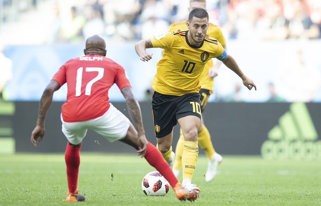 Eden Hazard, #10 of Belgium, dribbles the ball in the 3rd-place game against England at the FIFA World Cup at Saint Petersburg Stadium in Saint Petersburg, Russia, July 14, 2018. /VCG