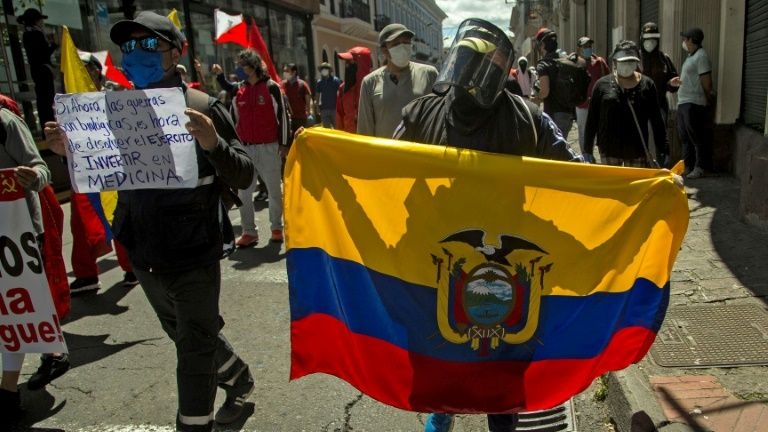 Demonstrators defied coronavirus restrictions to march in cities across Ecuador on Monday in protest against President Lenin Moreno's drastic economic measures to tackle the crisis.