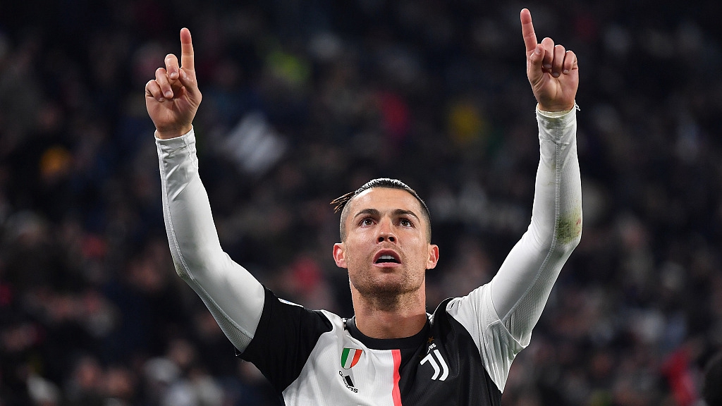 Cristiano Ronaldo celebrates after scoring the second goal during the Serie A game between Juventus and Parma at Allianz Stadium in Turin, Italy, January 19, 2020. /VCG