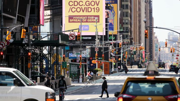 Information about COVID-19 is displayed on a screen in Times Square in New York, U.S., May 4, 2020. /Xinhua