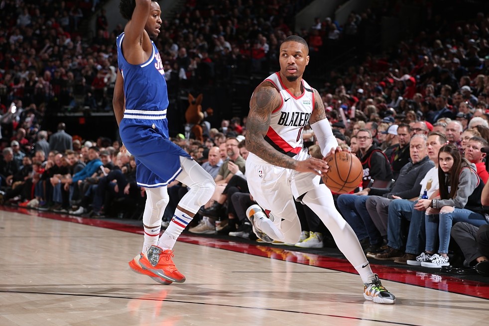 Damian Lillard #0 of the Portland Trail Blazers tries to penetrate in the game against the Sacramento Kings at the Moda Center Arena in Portland, Oregon, March 7, 2020. /VCG
