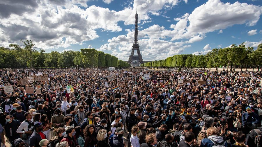 People take part in a demonstration to pay tribute to George Floyd in Paris, France, on June 6, 2020. /Xinhua