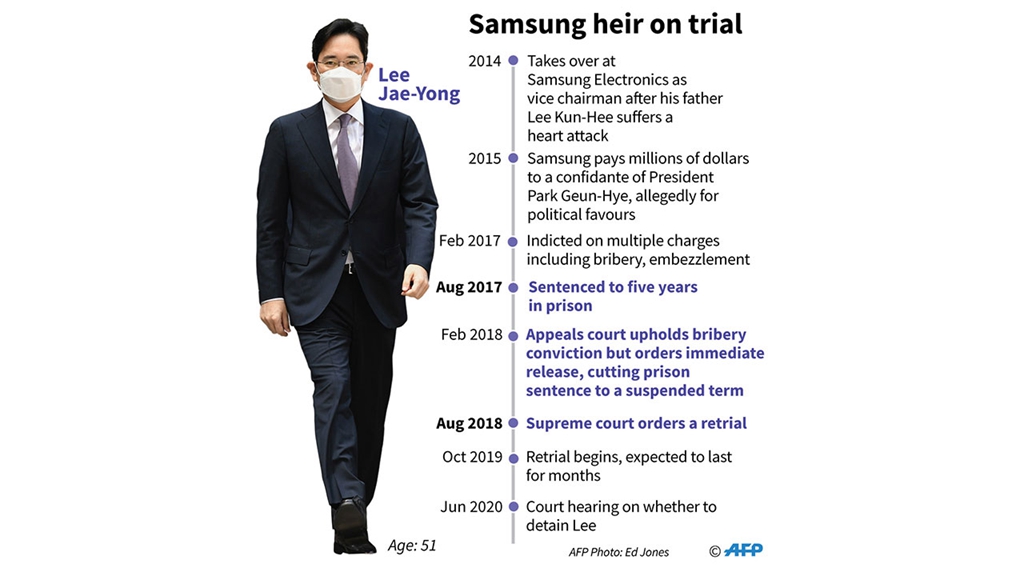 Samsung heir appears in court, waits to hear if he'll be jailed again