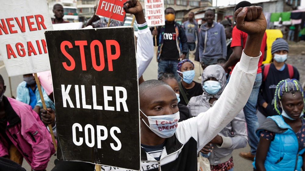 Protesters demonstrate against police brutality in response to the killing of George Floyd, in Nairobi, Kenya, June 8, 2020. /AP