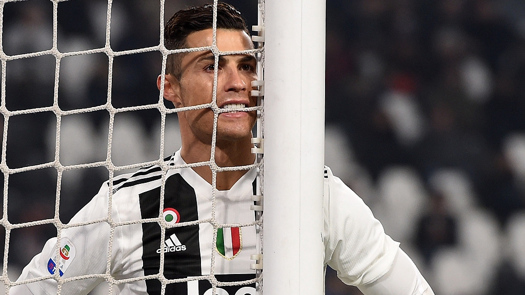 Juventus star Cristiano Ronaldo shows his dejection during their Serie A match against Frosinone, Turin, Italy, February 15, 2019. /VCG