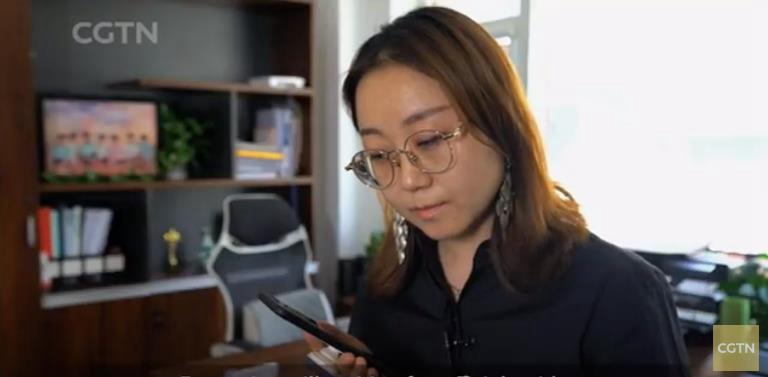 Zhai Min, senior manager at iMe Entertainment, at work. /CGTN