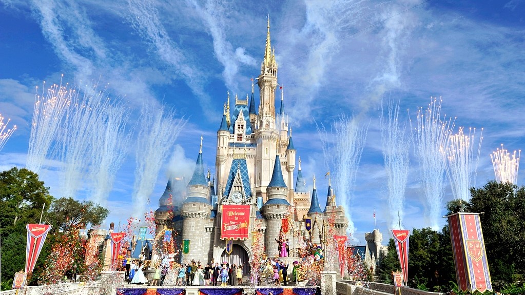 Fireworks light the sky over Cinderella Castle during the Grand Opening of New Fantasyland at Walt Disney World Resort in Lake Buena Vista, Florida, December 6, 2012. /VCG