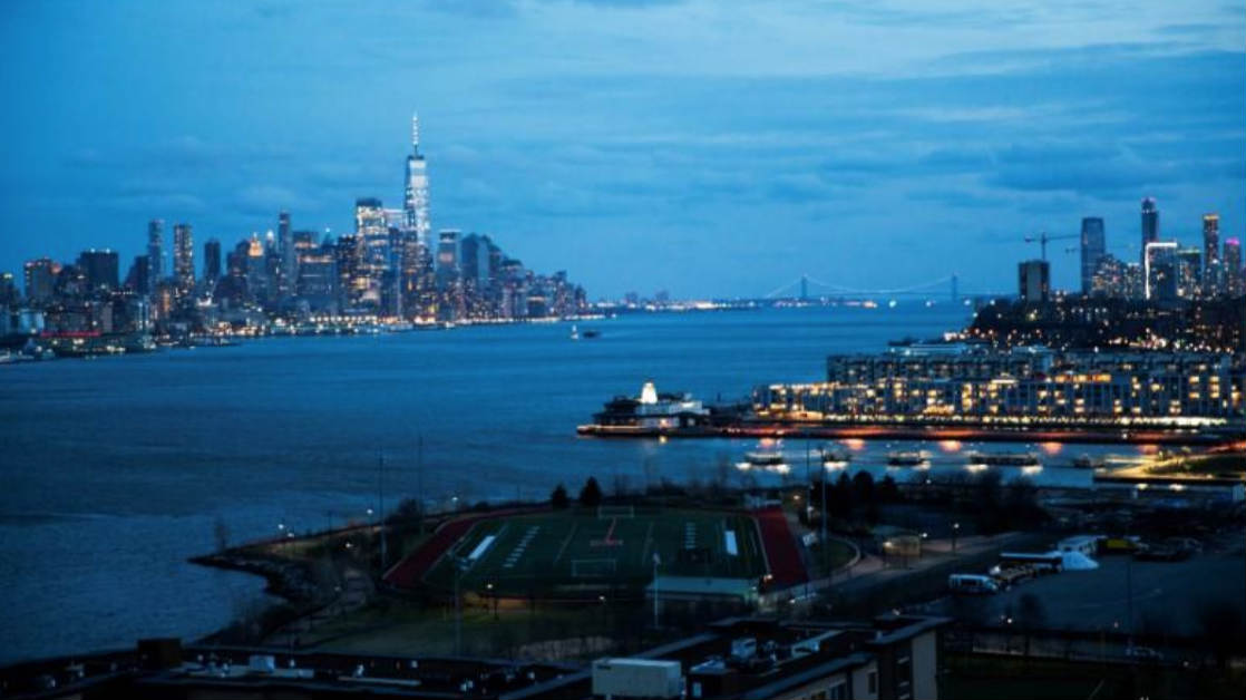 The One World Trade Center and the Financial District in New York are seen from a local park in Weehawken, New Jersey as the COVID-19 outbreak continues in New York, U.S., March 22, 2020. /Reuters