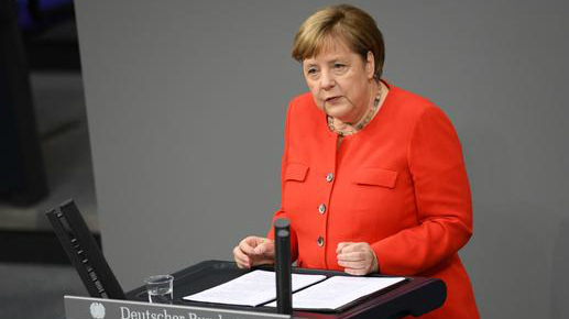 German Chancellor Angela Merkel addresses the lower house of parliament Bundestag in Berlin, Germany, June 18, 2020. /Reuters