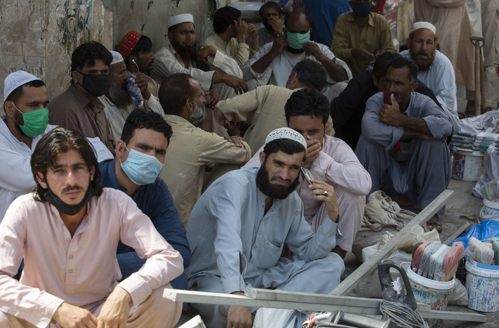Unmasked daily wage workers wait to be hired by customers in Rawalpindi, Pakistan, June 12, 2020. Pakistan ranks among countries hardest hit by the coronavirus with infections soaring beyond 18,000, while the government, which has opened up the country hoping to salvage a near collapsed economy, warns a stunning 1.2 million Pakistanis could be infected by the end of August. /AP