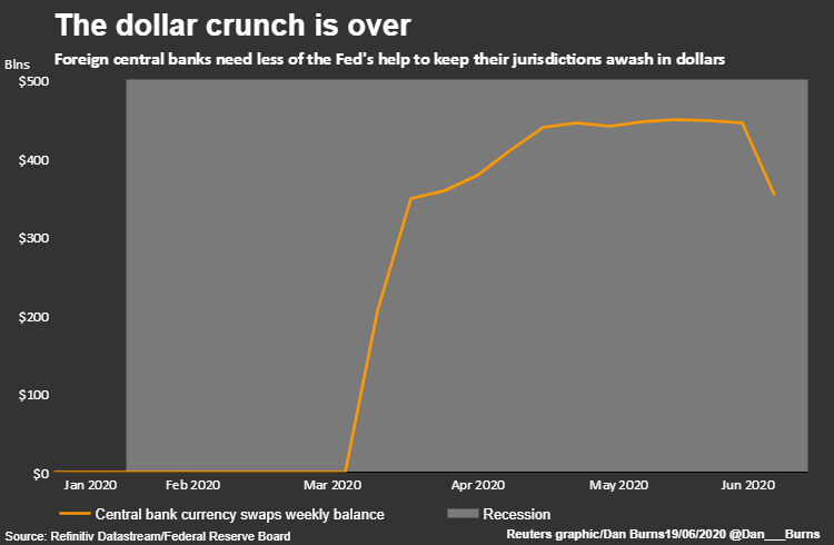 A global crunch for U.S. dollars that was a hallmark of the early moments of the coronavirus crisis appears to have passed, the latest milestone in a remarkable turnaround in financial conditions engineered by the Federal Reserve and other top central banks.