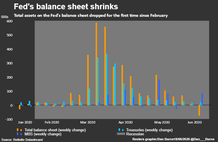 Data from the Fed on Thursday showed its peer banks around the world this week tapped it for the fewest dollars in nearly three months, and it was the main factor driving a surprise reduction in the Fed's 7-trillion-U.S.-dollar balance sheet – the first since February and the largest since the waning days of the financial crisis more than a decade ago.