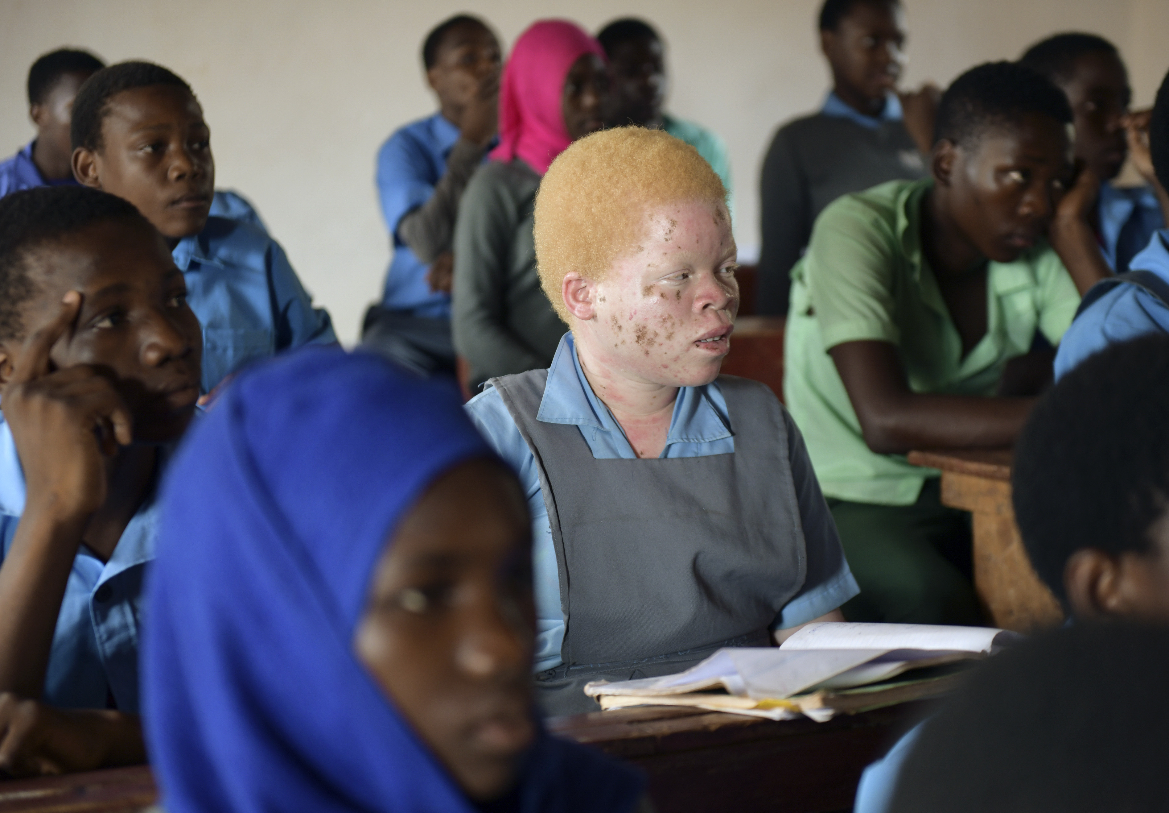 Mina Godfrey, a 17-year-old girl with albinism, attends class at the Nsanjama 2 Private Primary School in Zomba, Malawi, February 10, 2020. /AP