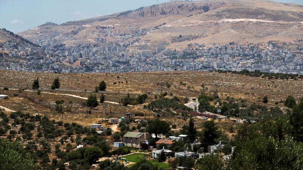 A general view picture shows a section of Itamar, a Jewish settlement, in the foreground as Nablus is seen in the background, in the Israeli-occupied West Bank, June 15, 2020. /Reuters