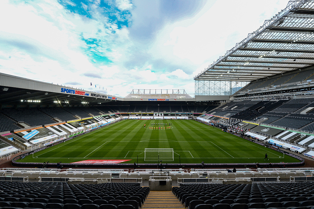 St. James Park where players applaud for a minute to thank the NHS prior to the FA Cup quarterfinal between Newcastle United and Manchester City in Newcastle upon Tyne, UK, June 28, 2020. /VCG