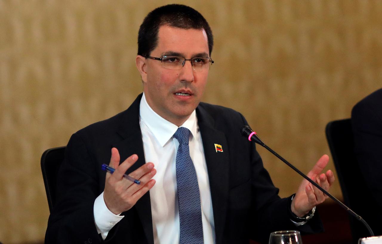 Venezuela's Foreign Affairs Minister Jorge Arreaza talks to the media during a news conference in Caracas, Venezuela, April 8, 2019. /Reuters