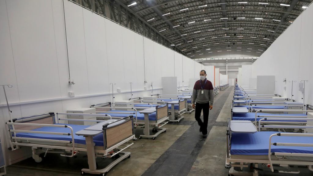 A health department official walks past beds set up in a temporary field hospital to deal with an expected surge in cases of COVID-19 at the Cape Town International Convention Centre, Cape Town, South Africa May 26, 2020. /Reuters