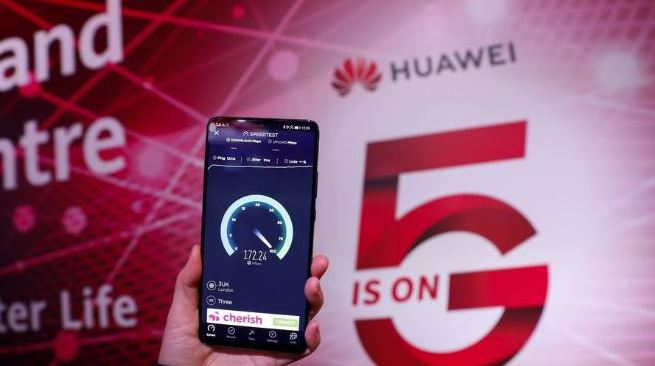 The speed of a Huawei 5G mobile phone is tested at the Huawei 5G Innovation and Experience Center in London, Britain, January 28, 2020. /Xinhua