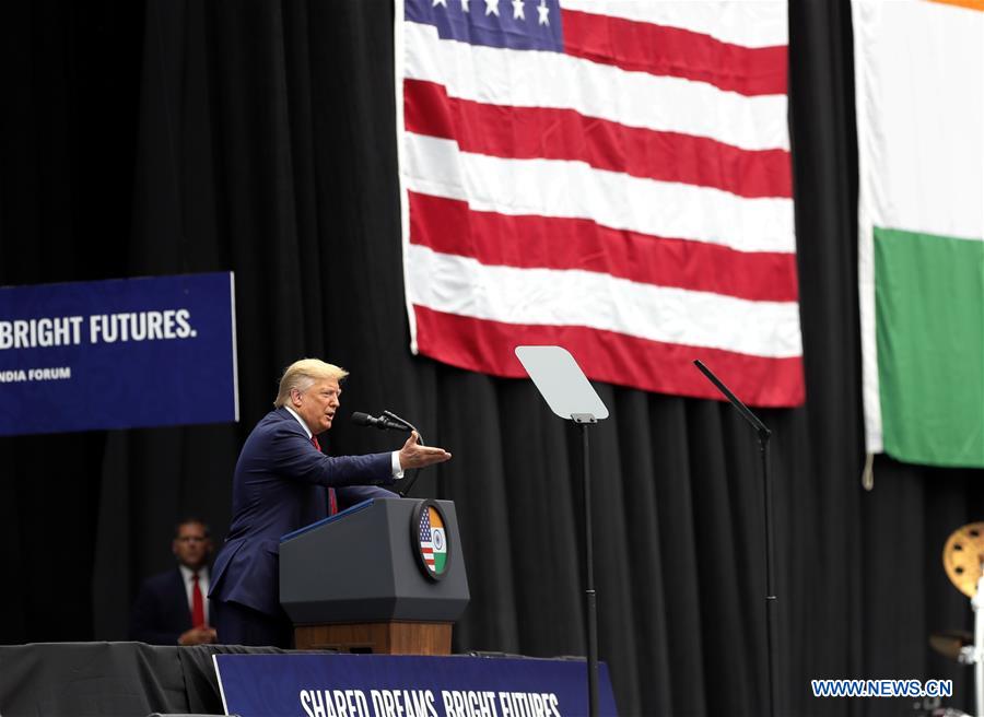 U.S. President Donald Trump addresses the "Howdy, Modi!" rally in Houston, Texas, the United States, September 22, 2019. /Xinhua