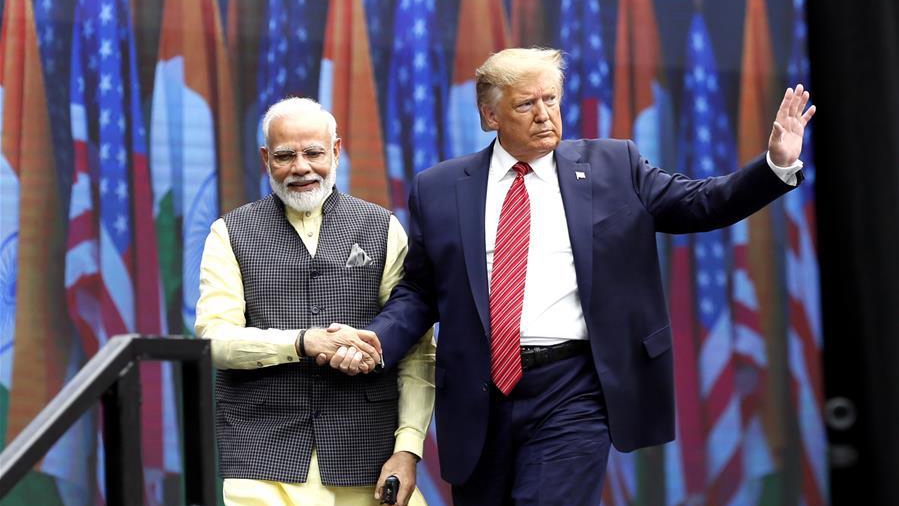 Indian Prime Minister Narendra Modi (L) and U.S. President Donald Trump attend the "Howdy, Modi!" rally in Houston, Texas, the United States, September 22, 2019. /Xinhua