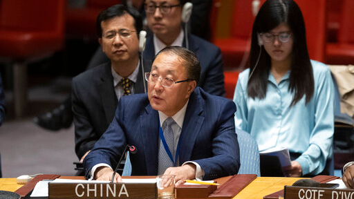 Chinese Ambassador to the United Nations Zhang Jun speaks during a Security Council meeting at UN headquarters, October 24, 2019. /AP
