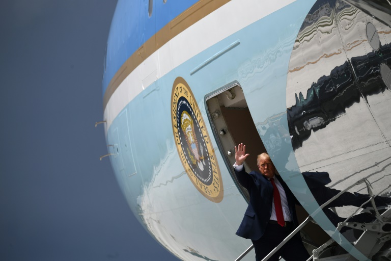 U.S. President Donald Trump waves from Air Force One in Miami, July,10, 2020. /AFP