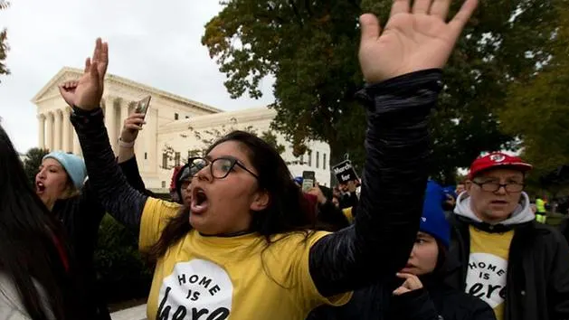 A DACA recipient celebrating outside the U.S. Supreme Court last month in Washington, DC after U.S. President Donald Trump said on Friday he would soon issue an executive order that includes a path to citizenship for DACA recipients. /Reuters