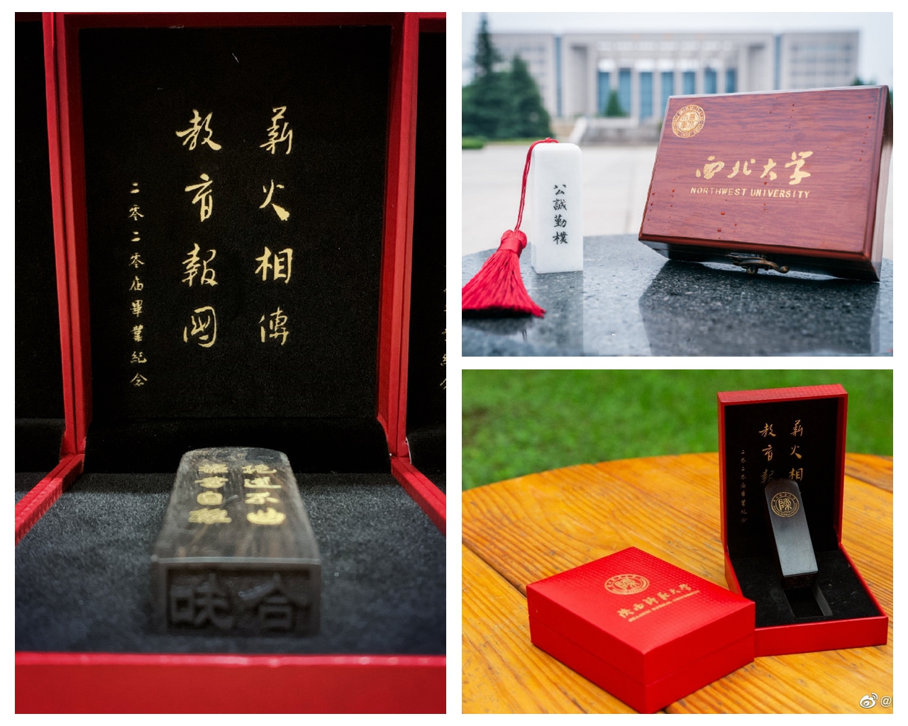 Back in the old days, seals were an essential accessory and a type of art for scholars, usually made of precious stones, wood or metals. SNNU prepared designs made of sandalwood while NWU splurged on jade. But both the school badge and motto were engraved on the seals.