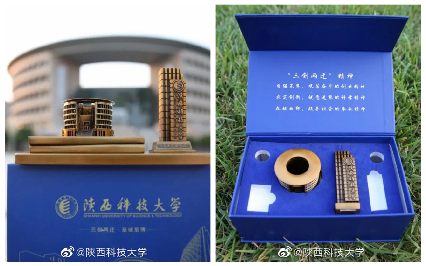 Other universities opted for something with a sentimental value, gifting graduates a memory that will stay with them forever and ever. The Shaanxi University of Science and Technology (SUST) designed a set of pen holders in the shape of landmark buildings on campus – the library and university's gate.