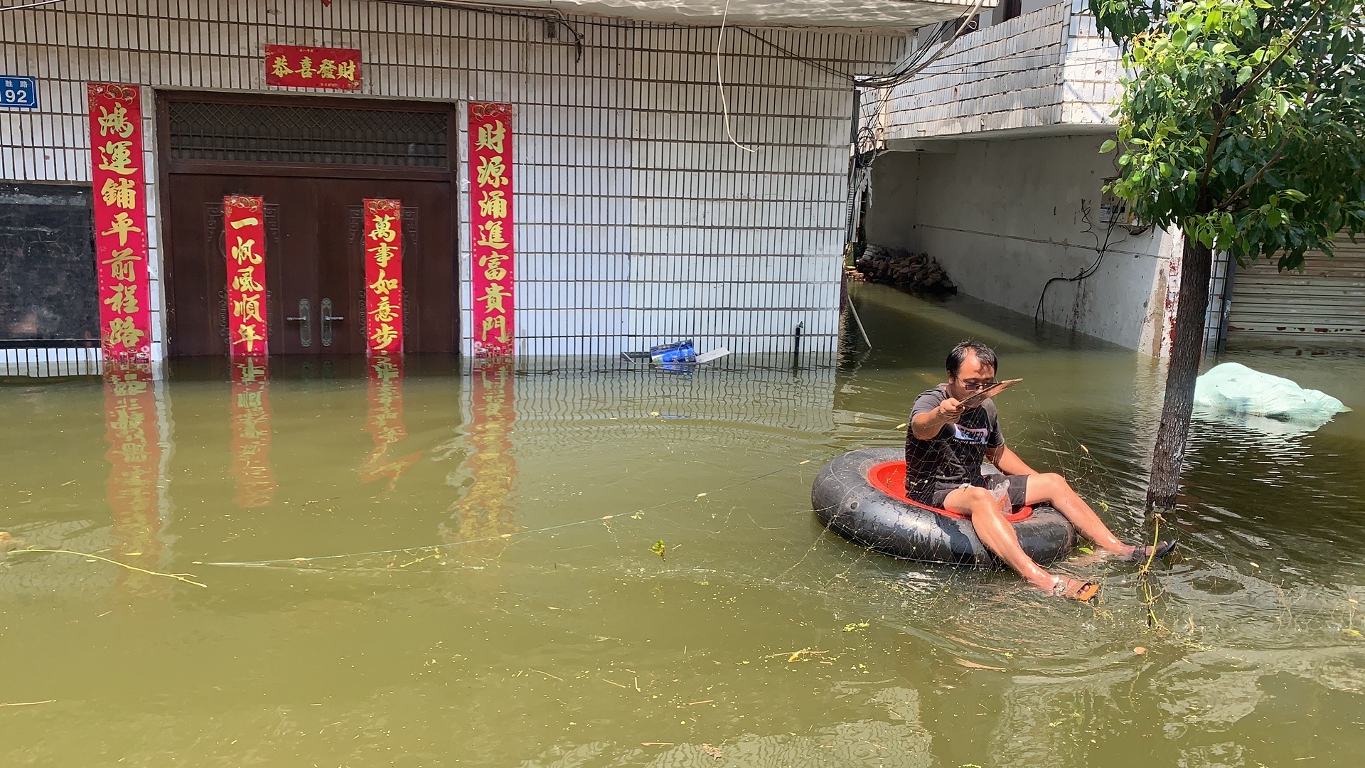 "The water is at waist level in my shop. Out there, it could be up to my neck. And the flooding may get worse," said a resident surnamed Wang, in waterproof bibs, carrying a life ring around his shoulder, who was checking his electric motorcycle shop.