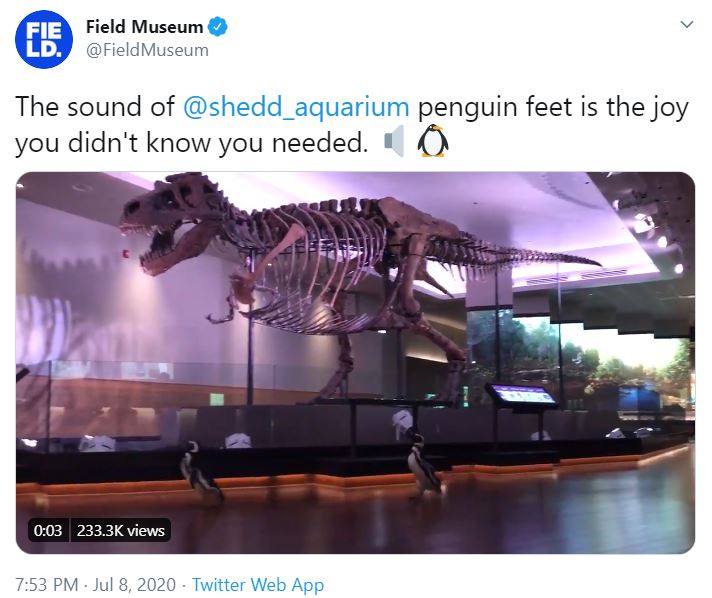 How much do penguins know about dinosaurs? Two of the birds from Chicago's Shedd Aquarium got to brush up on their natural history knowledge when they were allowed a private tour of the city's Field Museum last week and came beak to jaws with a giant T-Rex skeleton.