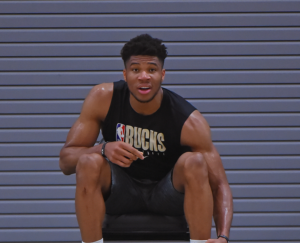 Giannis Antetokounmpo of the Milwaukee Bucks in practice in Orlando, July 15, 2020. /VCG