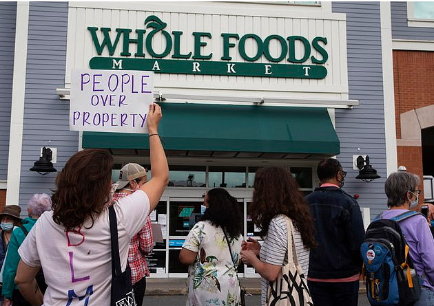 A protest outside a Whole Foods Market in the U.S. /Twitter screenshot