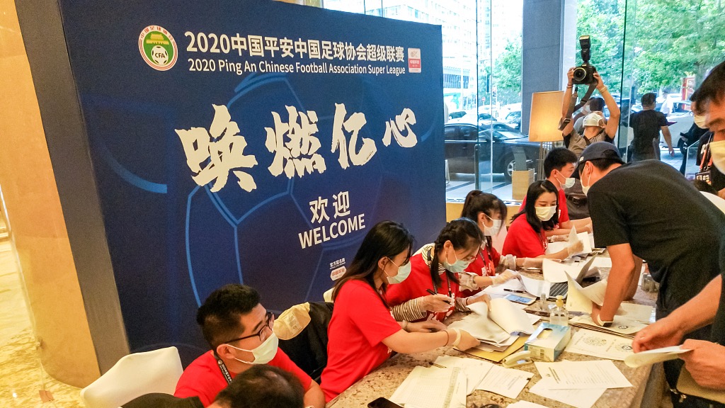 Sports journalists arrive in the designated hotel ahead of the Chinese Super League season opener, Dalian, China, July 23, 2020. /VCG