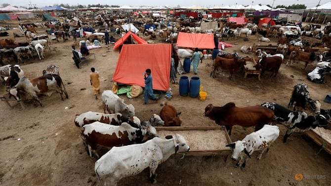 A general view of bulls for sale at a cattle market ahead of the Muslim festival of sacrifice Eid al Adha in Karachi, Pakistan, July 26, 2020. /Reuters