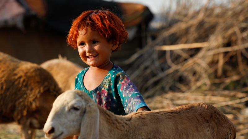 A girl stands with sheep ahead of the Eid al Adha festival in Peshawar, Pakistan. /Reuters